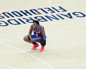 比赛首节,尼克斯球员阿努诺比受伤离场。随后尼克斯官方宣布,阿努诺比左腿筋拉伤,本场不会回归。