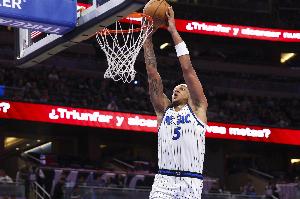 赛季至今,班凯罗场均得到21.7分8.7篮板4.1助攻0.8抢断0.9盖帽。