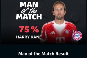 本场比赛,凯恩在替补登场的情况下完成帽子戏法。以75%的票数力压队友莱默尔(10%)、奥利塞(6%)、斯坦尼西奇(2%)和基米希(1%)夺得全场最佳。
