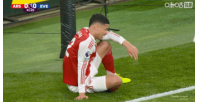 比赛第42分钟,加纳开出埃弗顿的前场定位球,拉亚出击时不慎给了萨利巴脸部一肘!后者一度倒地不起。